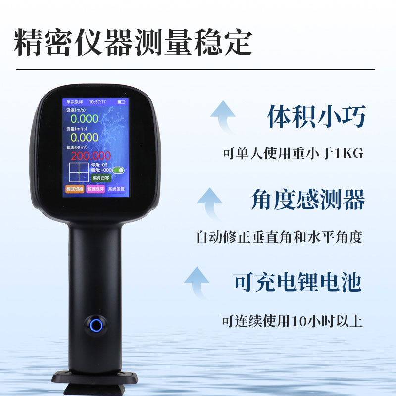 5.多种测量模式,可单次测量;也可连续测量,可以连续测量30min;具有单机流量估算模式,可以对规则断面的河渠的流量进行估算;