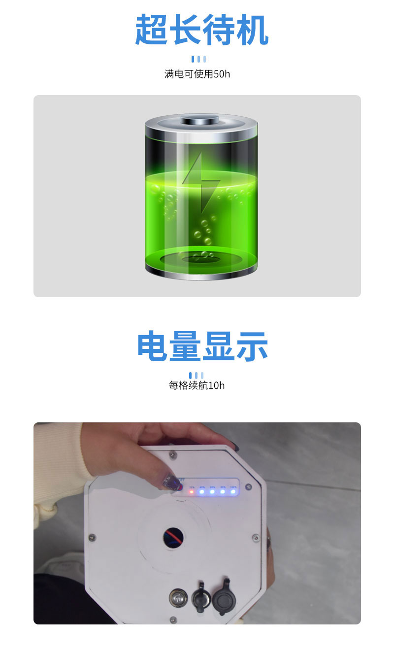 5、锂电池:容量12000maH,电池续航时间≥50h,带电量显示功能