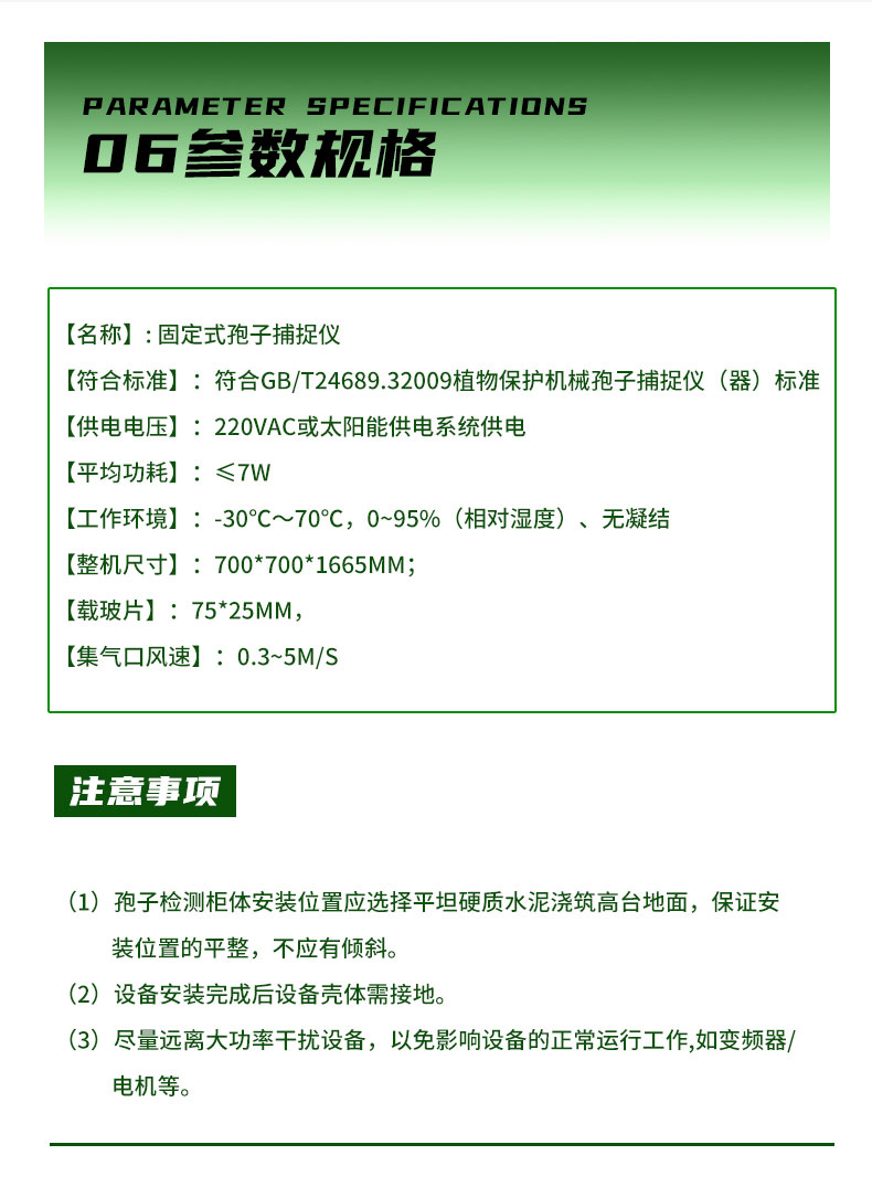 符合标准:符合GB/T24689.32009植物保护机械孢子捕捉仪(器)标准