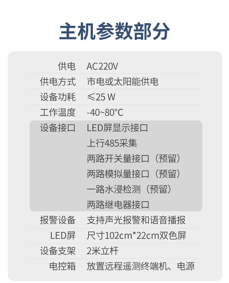 | 报警设备 | 支持声光报警 | 支持语音播报 |