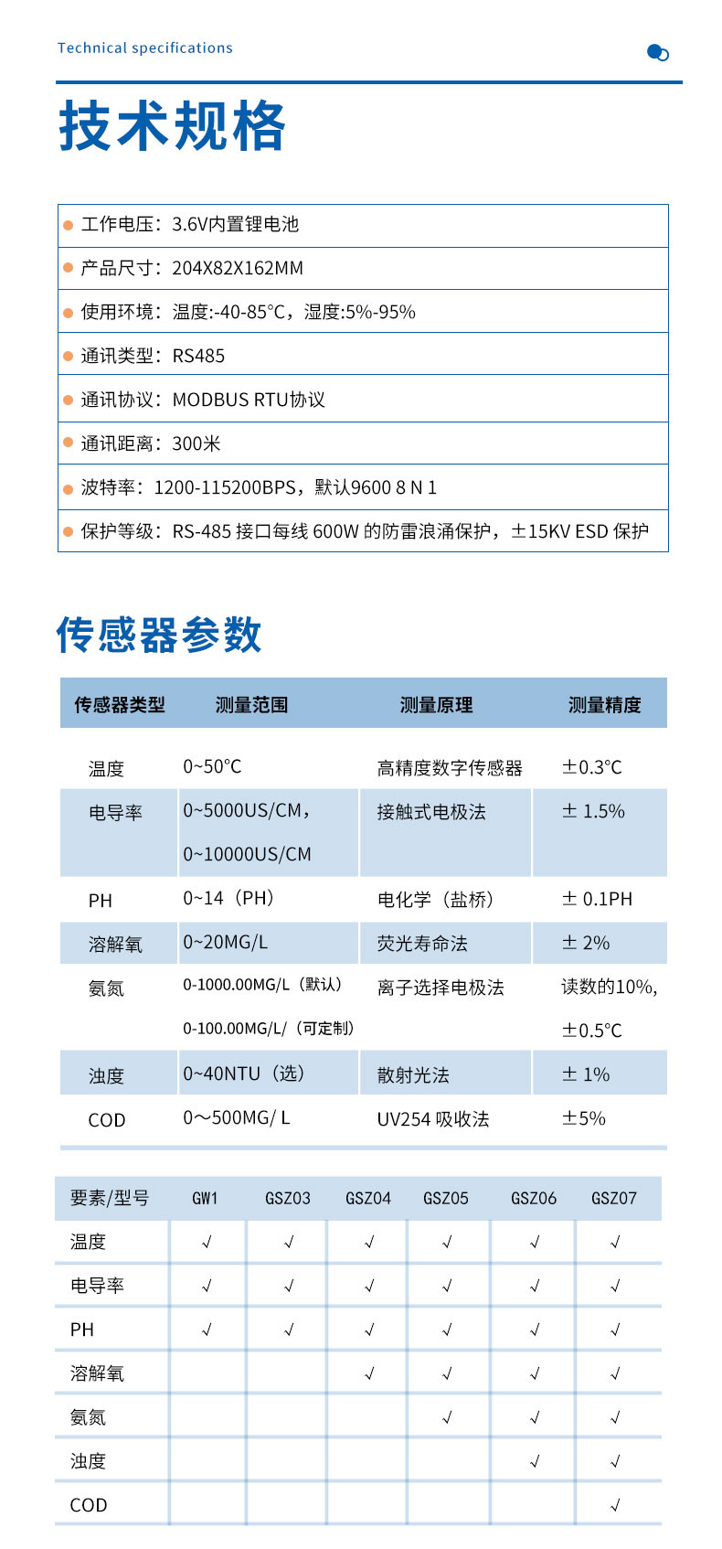 1、采用内置3.6V 152AH锂电池,保证连续工作3年。