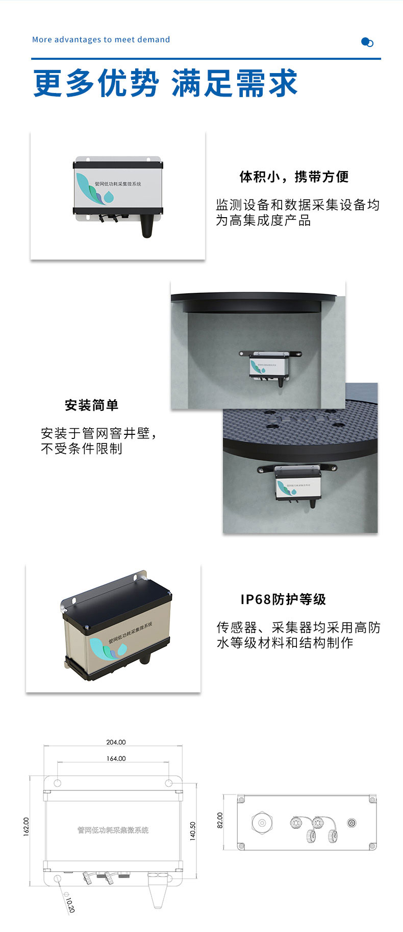 【产品简介】一、排水管网采集系统产品概述排水管网采集系统通过4G直接透传至指定服务器,支持MQTT协议透传Json数据。其他格式数据通过4G传输至我们公司云平台,我们公司提供http接口,其他···