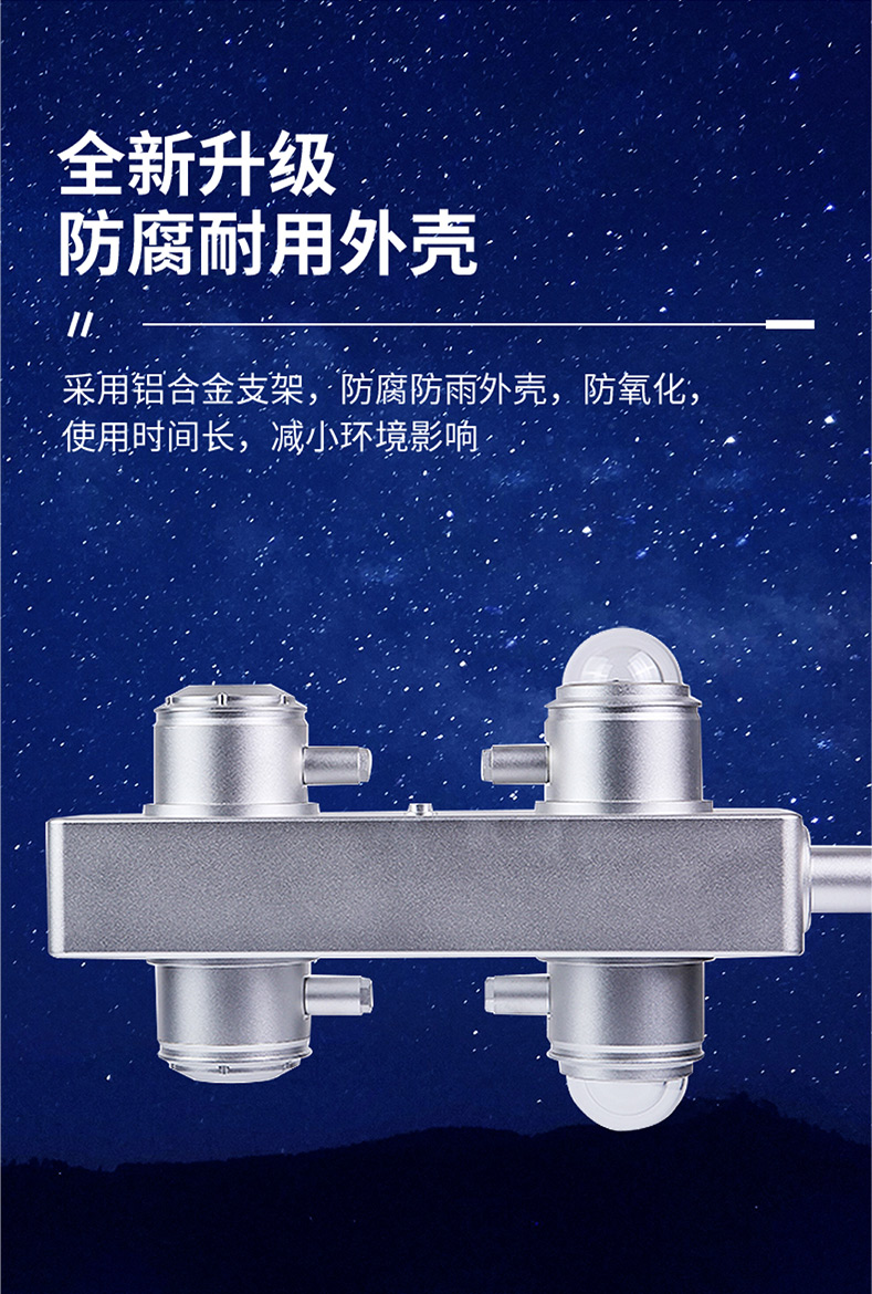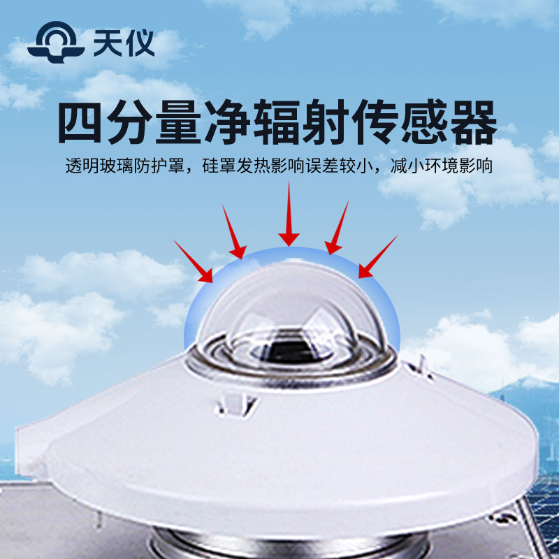 天仪的TY-FS7H四分量净辐射传感器通过直接测量每日的长波辐射和短波辐射,并计算得到净辐射量。用于大气辐射(云层/水蒸气和二氧化碳等发出的辐射)和地球与大气之间的净辐射交换的气象观测。净总辐射(短波+长波)通常由4个净辐射表或者单个净辐射表(其探测器能响应全波段)进行测量。地球长波辐射表使用一个半球朝上的探测器测量向下发射的长波辐射。净长波辐射和地气系统向下的发射辐射可由计算得到。在气象/光伏/园艺/农业和工业等领域得到了广泛的使用。