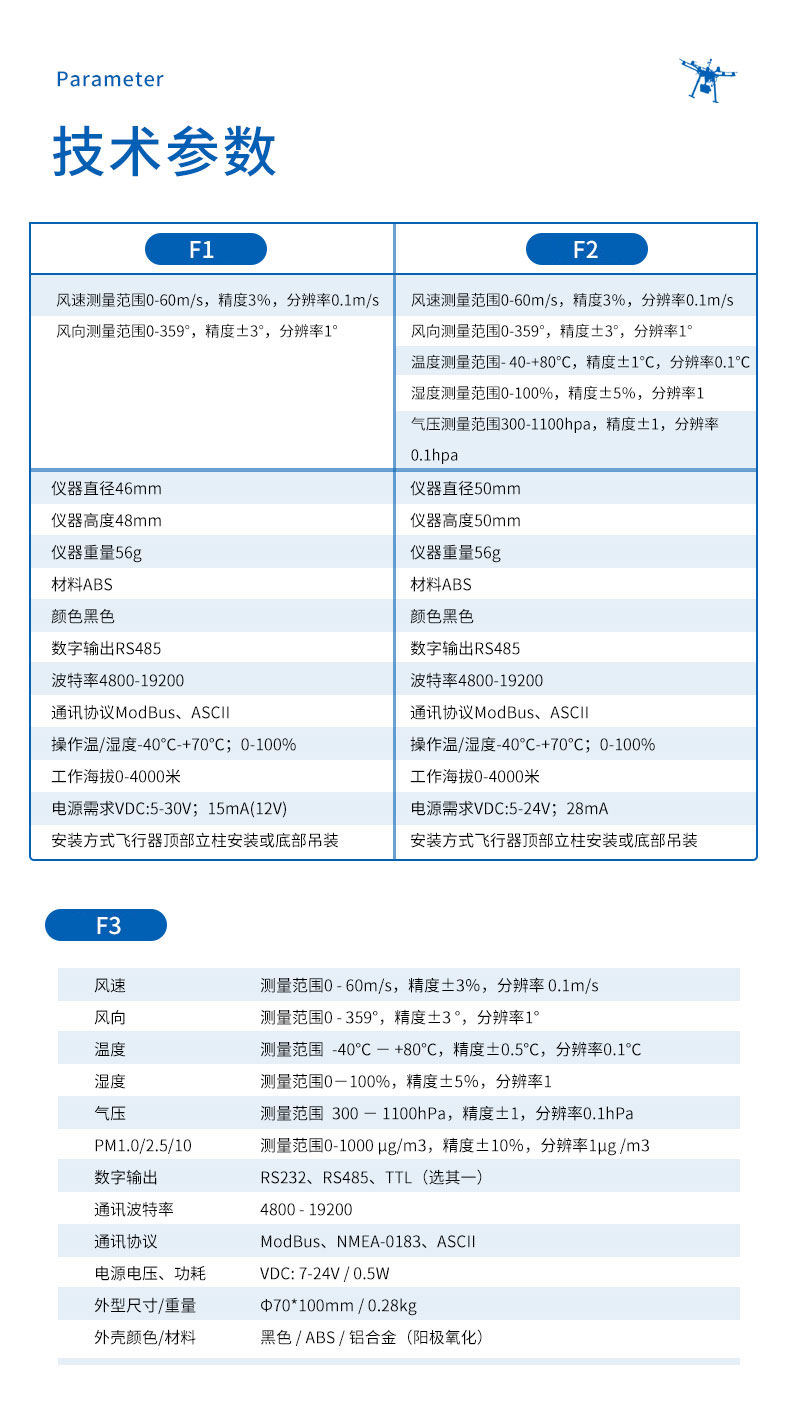 三、无人机风速风向仪主要技术参数