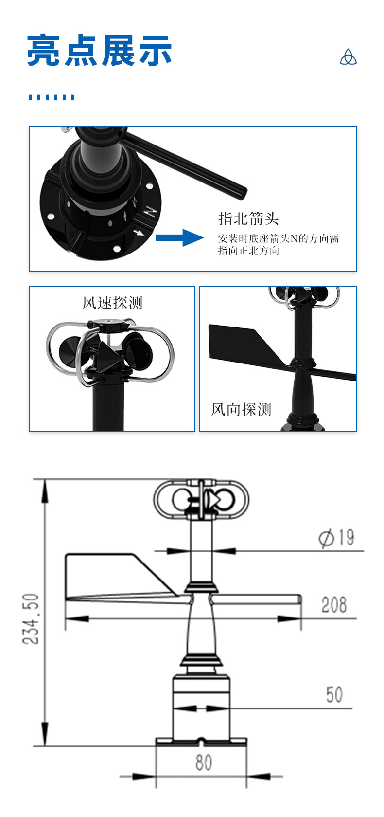 四、机械一体式风速风向传感器安装要求