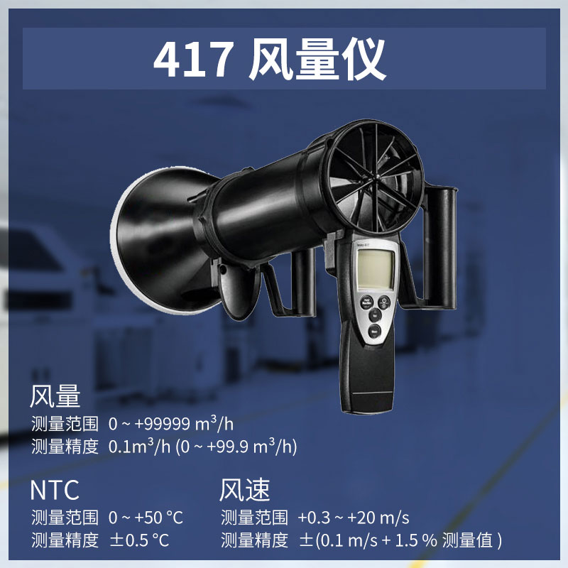| 0.1~+200m³/h ,Preferred 0,1to100m³/h (testo 417 in combination with funnel & flowstraightener (0554 4172) | |