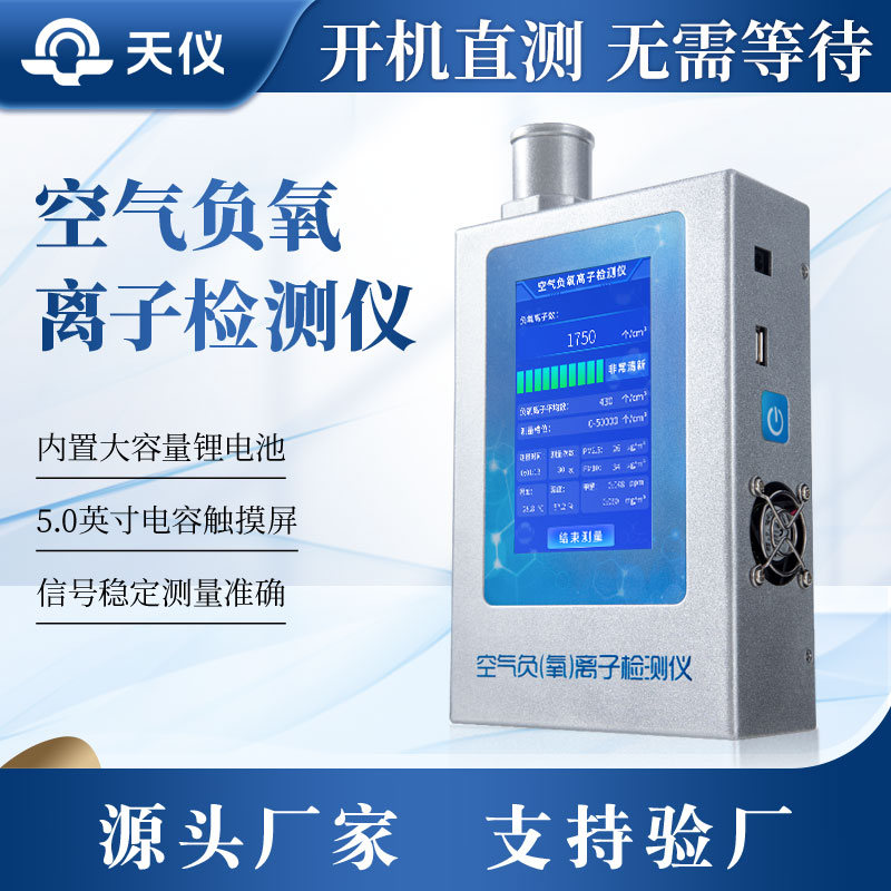 多功能环境负氧离子检测仪操作简单,5.0英寸全彩大屏显示实时测量数据、仪器工作状态、自动计算平均值。操作人员零基础无需专业培训也可快速测量。