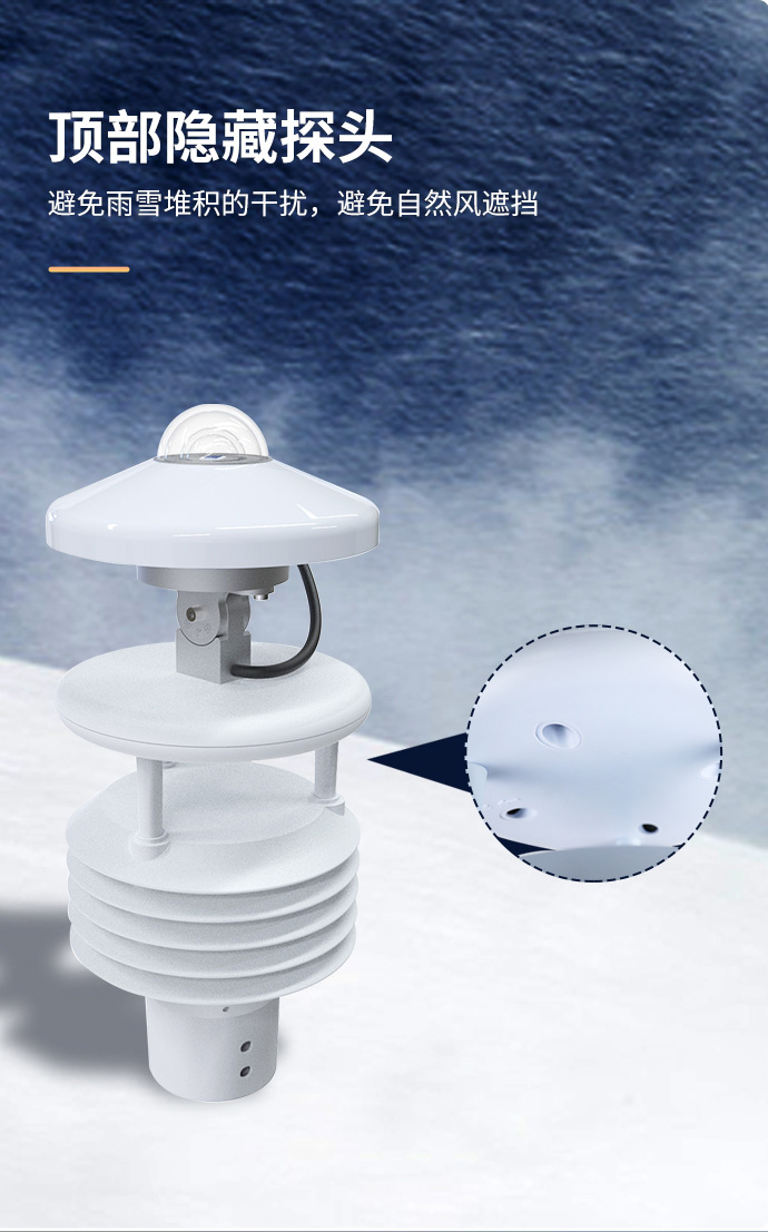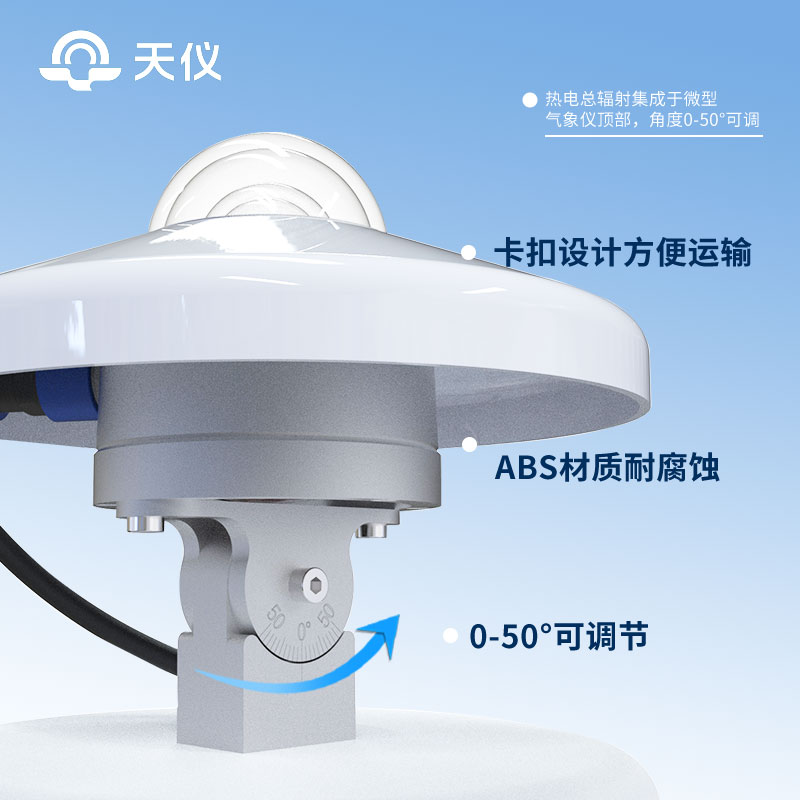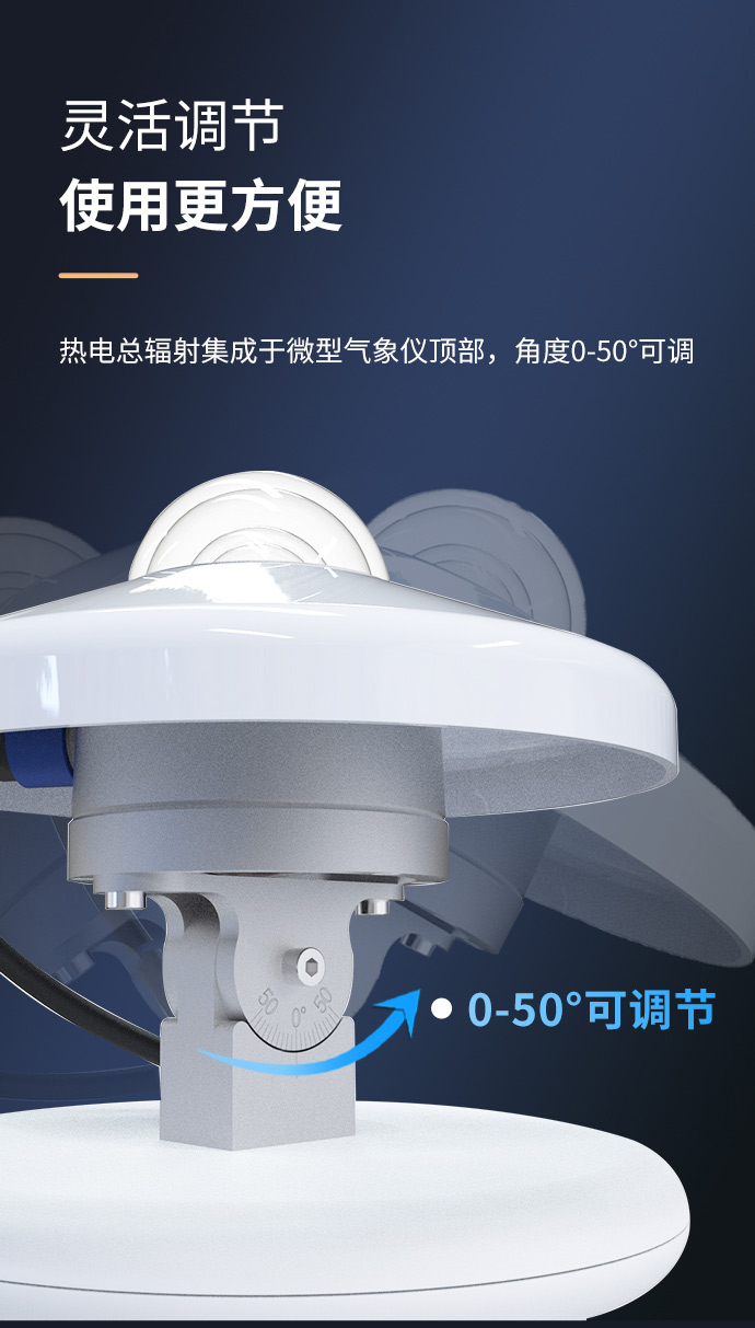 3、热电总辐射集成于微型气象仪顶部,角度0-50°可调