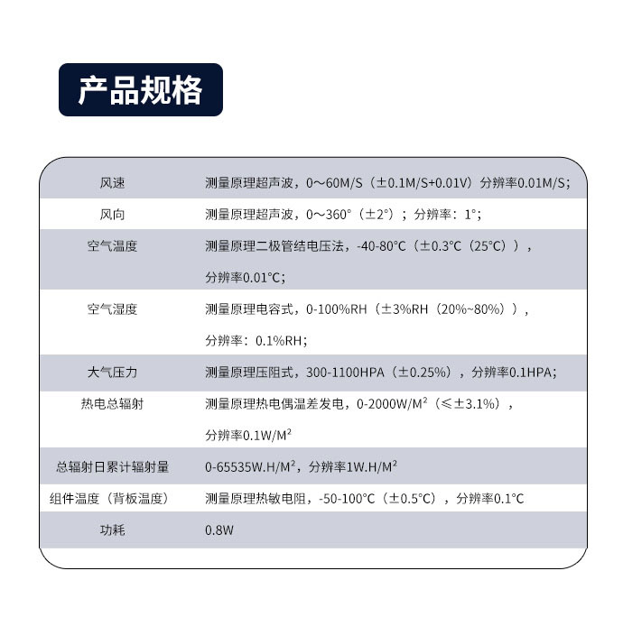 三、分布式光伏环境监测仪技术参数