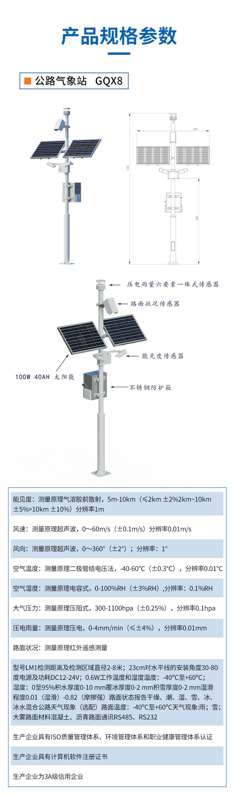 五、8米路面状况监测站技术参数