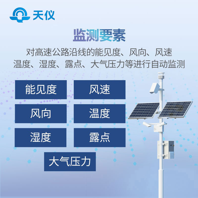 公路气象站是利用综合采集控制技术、计算机软件技术、通讯技术等技术对多种气象传感器从结构到系统组成上进行集成化应用。能够连续获得交通沿线的气象信息,能够对能见度、风速、风向、温度、湿度、大气压、雨量、路面状况等气象要素进行实时监测,通过远程传输完成各类数据的汇总并及时传送给交通部门,为交通相关部门做好各沿线交通气象保障服务提供第一手资料,以此为基础,可为高速公路安全主管部门和人们的出行提供及时的气象信息服务。