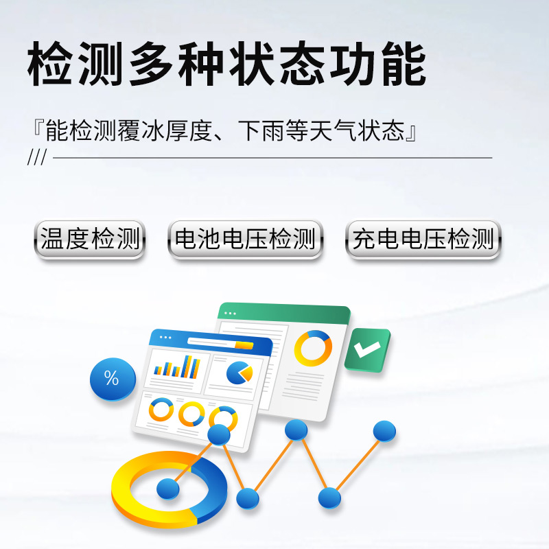 1、覆冰厚度:测量原理微波检测,最大测量厚度:30.00mm,检测分辨率:0.01mm;功率:<1W(选配融冰装置15W)