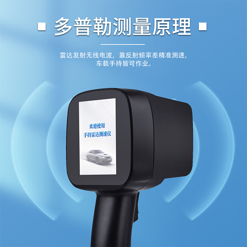 手持式雷达测速仪依据多普勒效应,通过向车辆方发出无线电波,当电波的能量撞击车辆时,波的能量一小部分返回雷达设置天线;根据返回信号频率不同,测定车辆速度,支持车载动态测速。