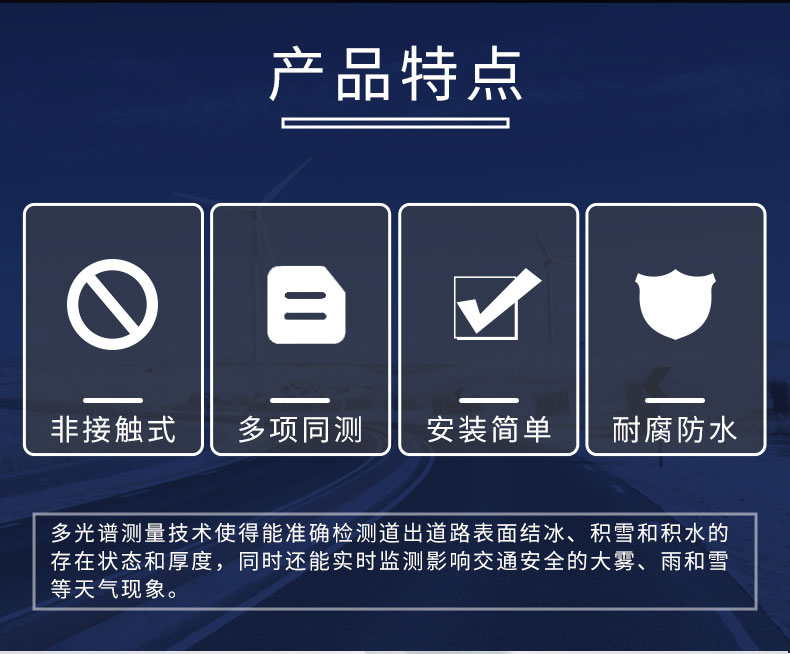 【产品简介】非接触式路面传感器产品介绍LM2是一款非接触式路面传感器,它采用遥感技术,避免了对道路的破坏,从而不会因为安装道路气象站引起的对交通的干扰。多光谱测量技术使得能准确检测道出道路表面···