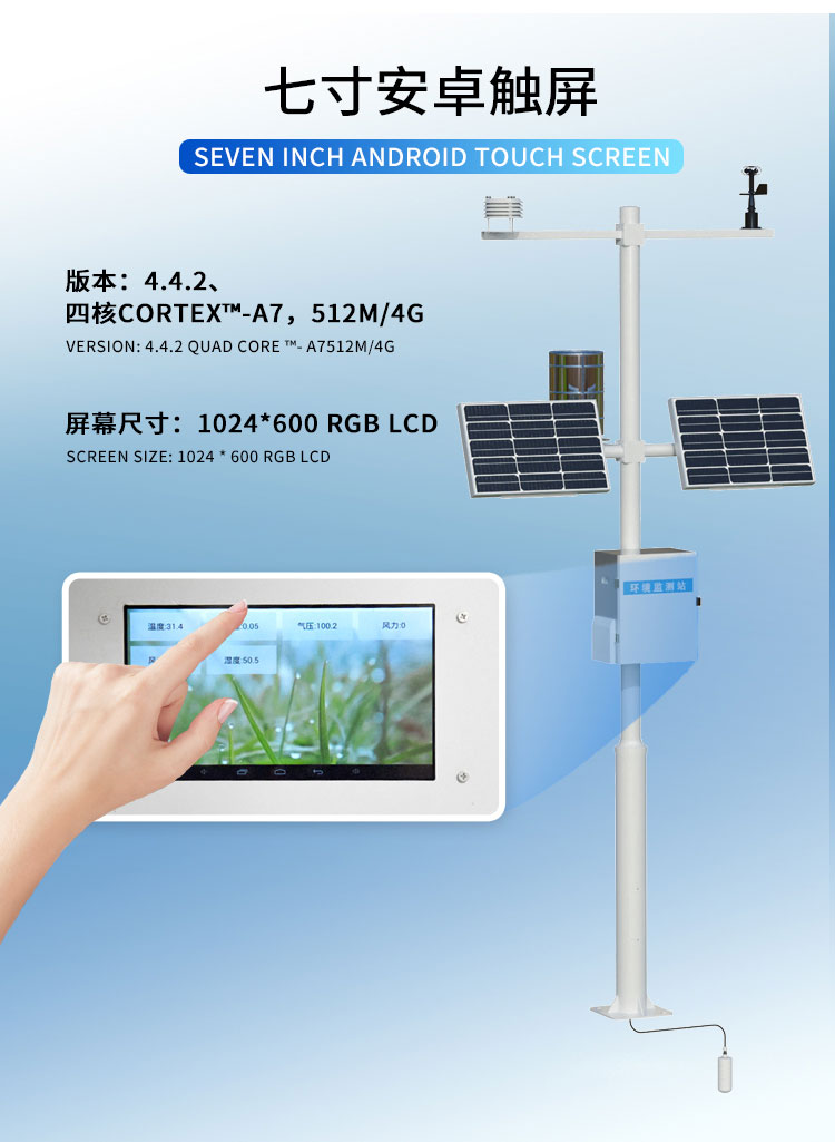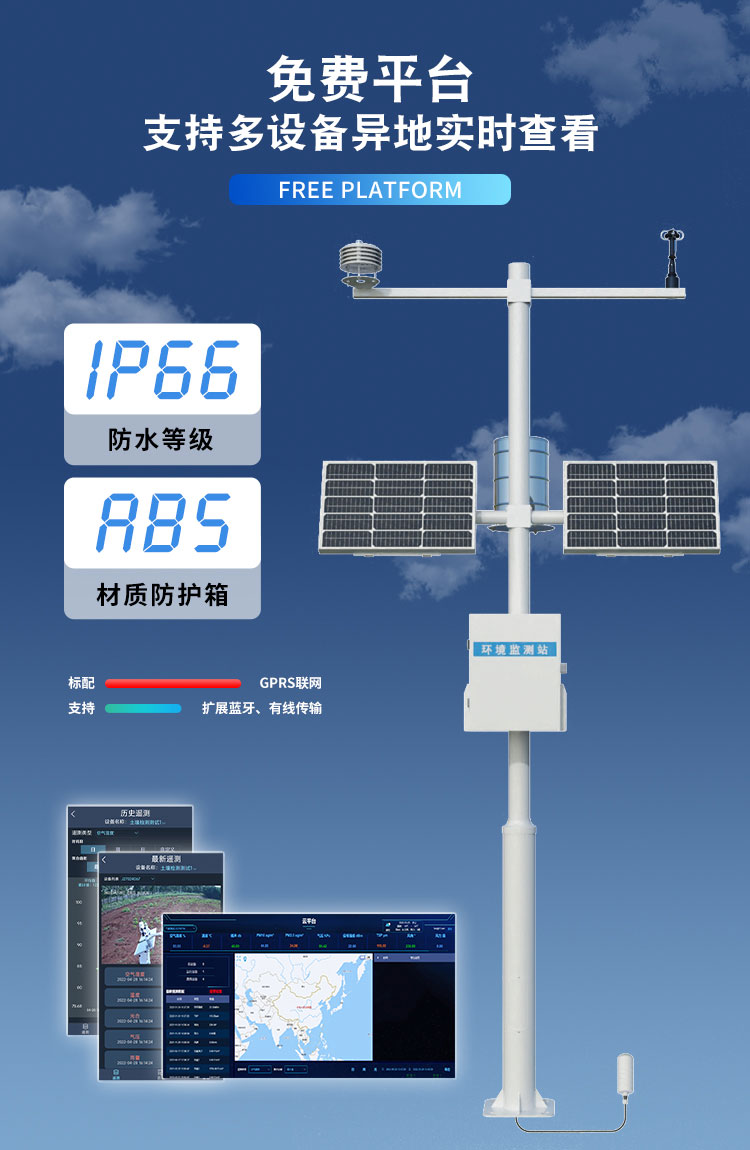 该设备由气象传感器,采集器,太阳能供电系统,立杆支架,云平台五部分组成。免调试,可快速布置,广泛运用于气象、农业、林业、科学考察等领域。