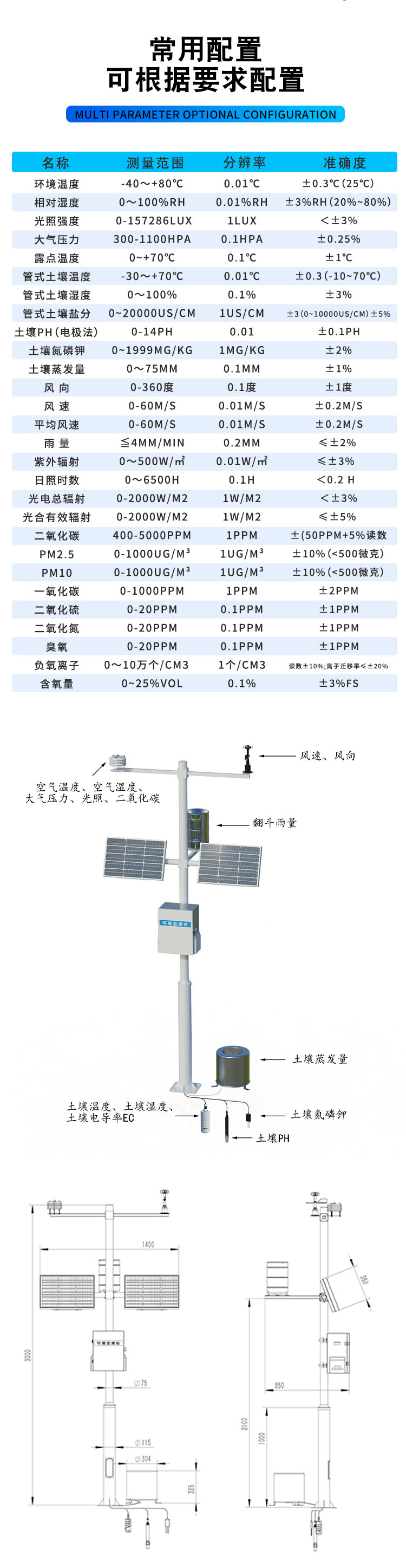 三、农业气象站技术参数