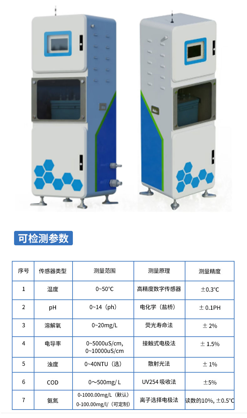 | 7 | COD | 0~500mg/ L | UV254 吸收法 | ±5% |