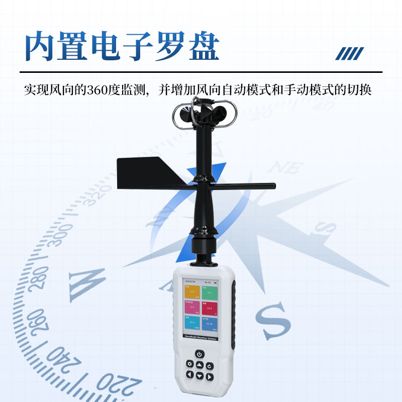 2.内置电子罗盘,实现风向的360度监测,并增加风向自动读取和手动读取的切换。☆
