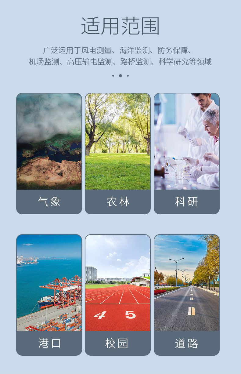 七要素超声波手持气象站对风速、风向、温度、湿度、气压、降雨量、冰雹等气象环境要素进行实时观测,可实现户外气象参数24小时连续在线监测,其中自带显示屏为触摸屏,数据上传实现秒级上传,通过数字通讯接口将多参数一次性输出给用户该设备免调试,可快速部署,广泛运用于风电测量、海洋监测、防务保障、机场监测、高压输电监测、路桥监测、科学研究等领域,在当前形势下,我们已经做好了国产替代的准备。