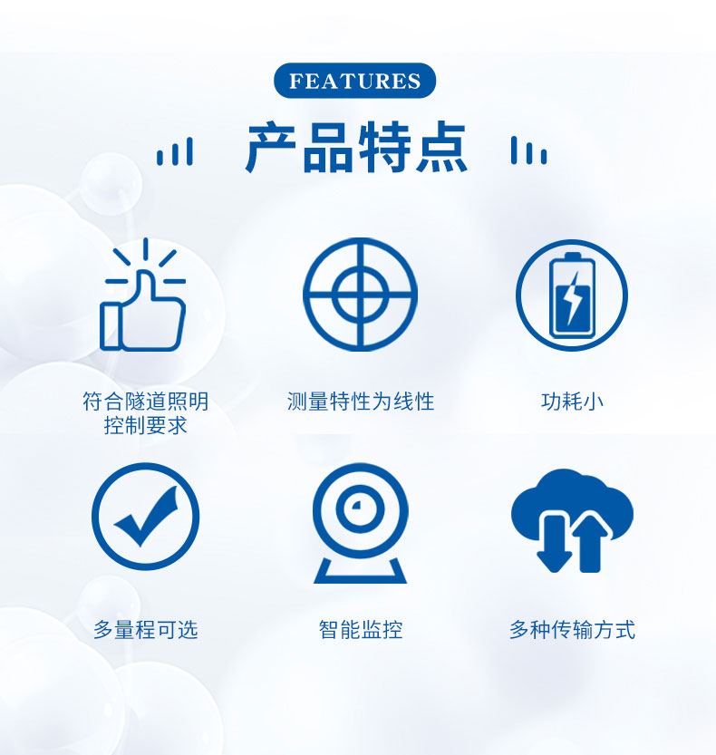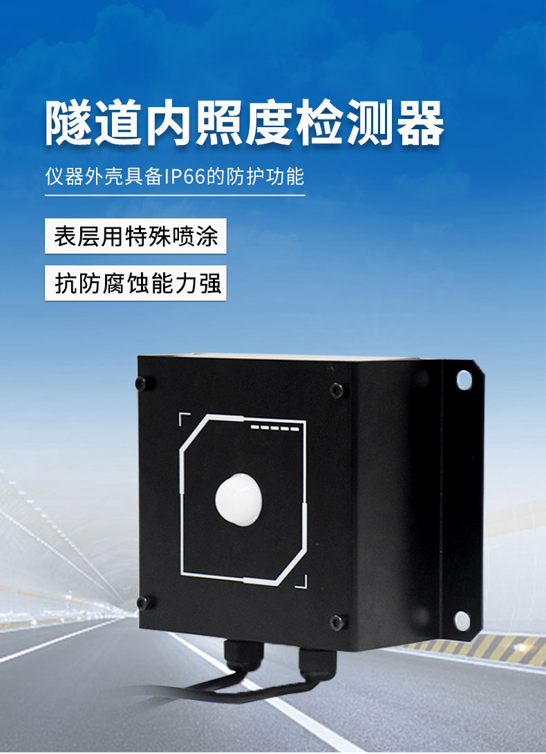 隧道洞内照度检测器能完全满足整个隧道照明控制的要求,预置控制模式的控制器根据光源测量值按预设参数自动进行切换照明开关,为隧道照明提供了最佳值。它的设计完全符合CIE关于隧道照明测量的要求,并能满足《公路隧道通风照明设计规范》,而且它的整体设计完全能满足野外恶劣的工作环境地要求。