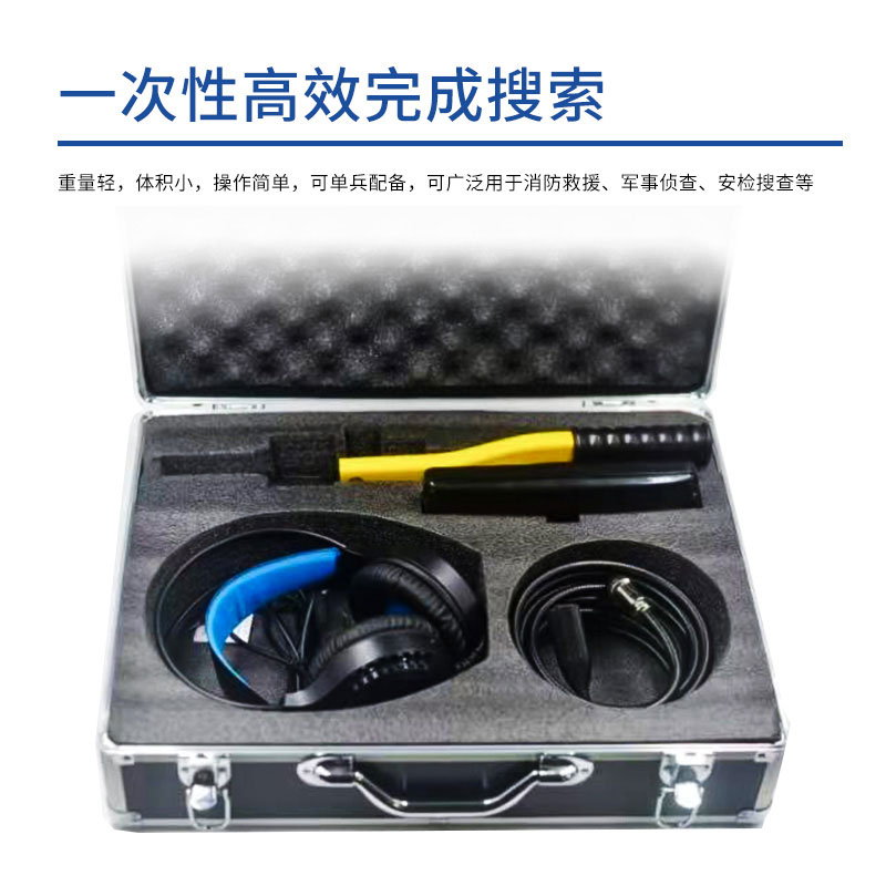 本产品是一款集先进雷达技术、高灵敏信号接收器、音视频技术、智能芯片于一体的多功能救援设备,可用于搜索、救援因自然灾害而受困的人员,可应对狭窄空间、黑暗环境、墙体遮挡等复杂环境,并一次性高效完成对目标区域的搜索。且该探测仪重量轻,体积小,操作简单,可单兵配备,可广泛用于消防救援、军事侦查、安检搜查等任务。