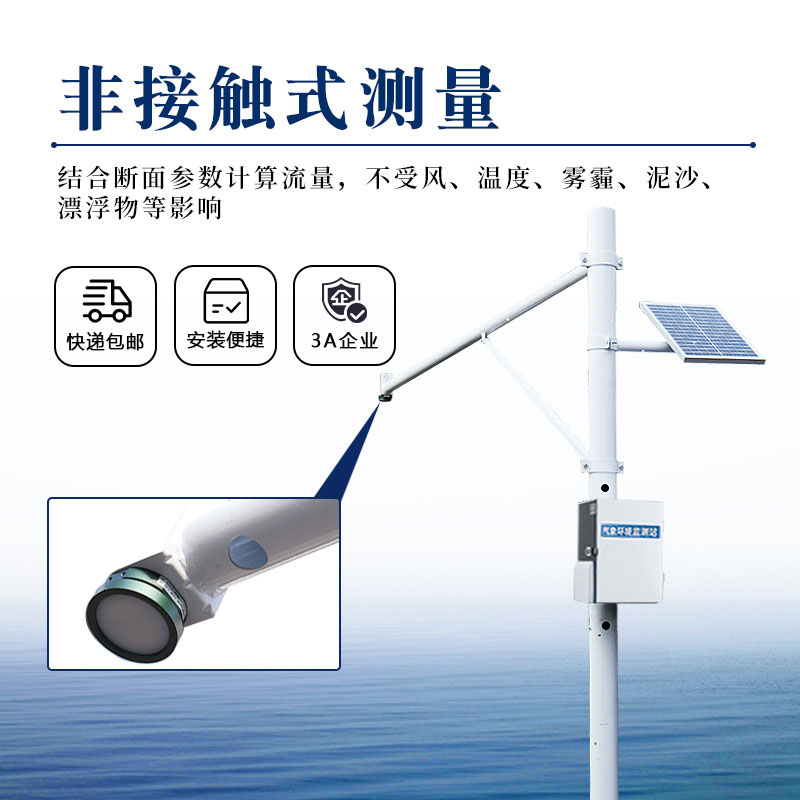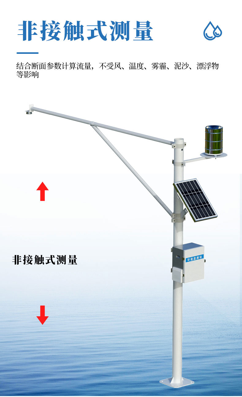 1、非接触式测量,结合断面参数计算流量,不受风、温度、雾霾、泥沙、漂浮物等影响。