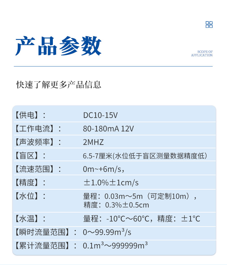 二、多普勒流速传感器技术参数