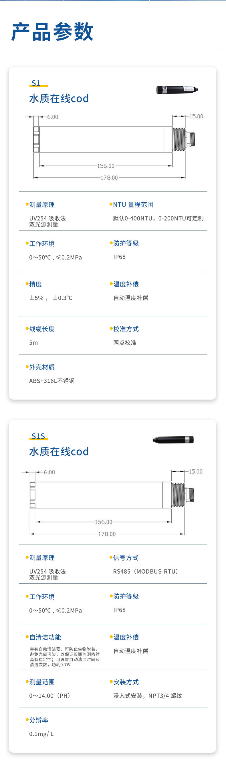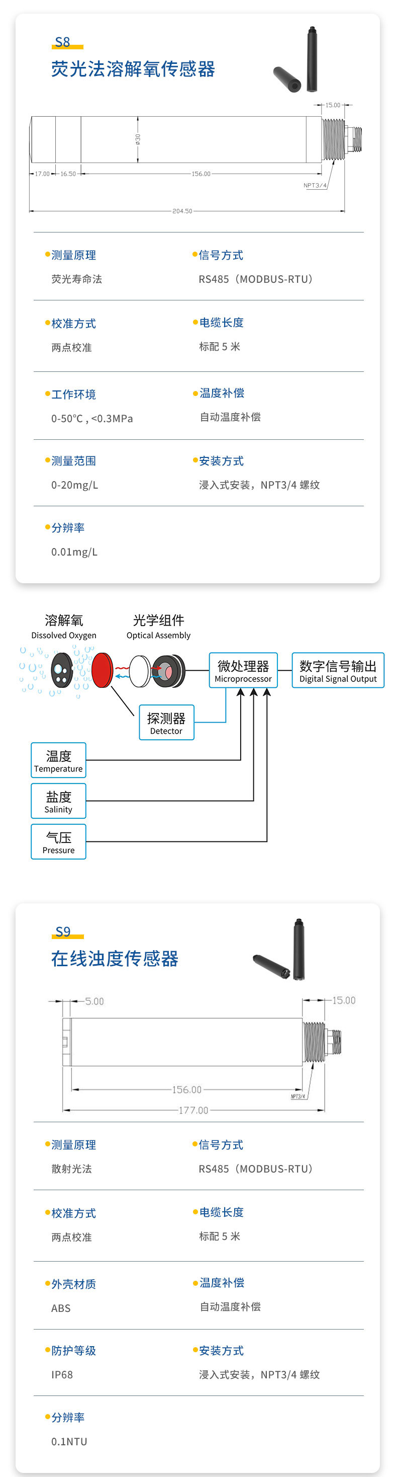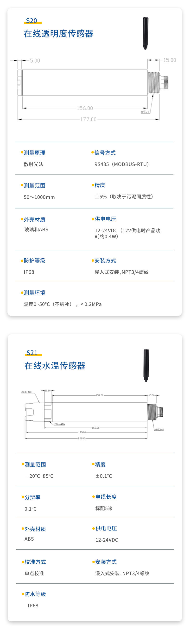 二.水质透明度温度传感器技术性能和规格
