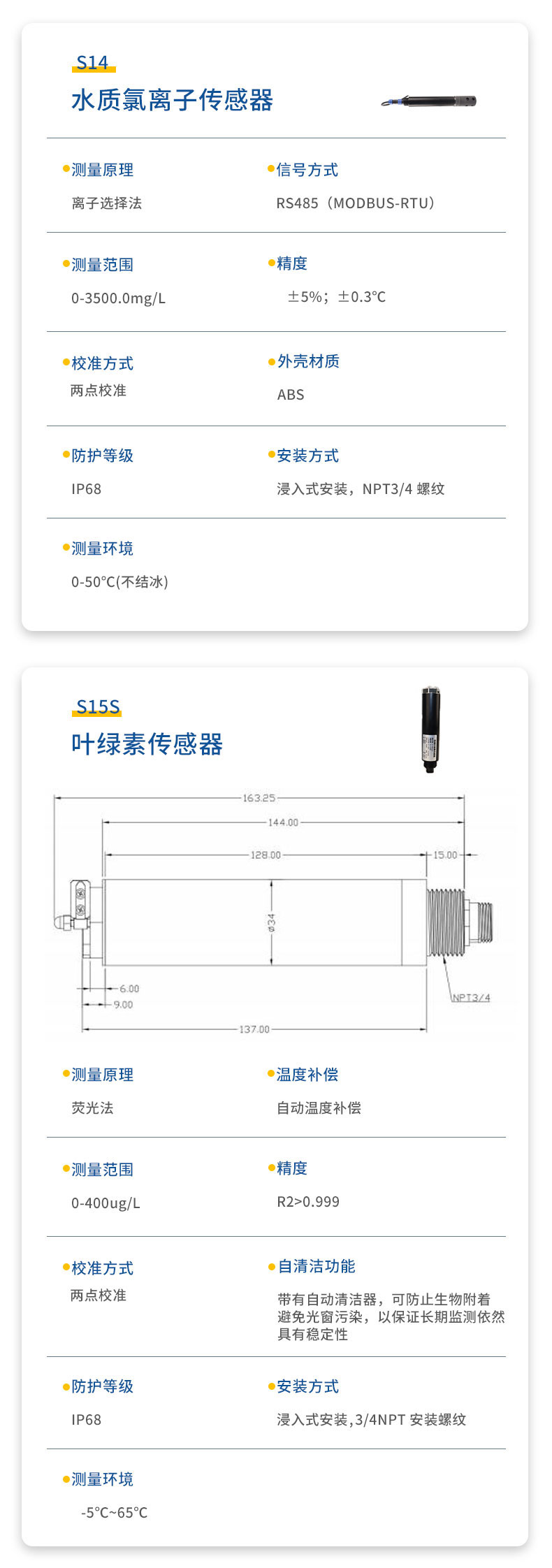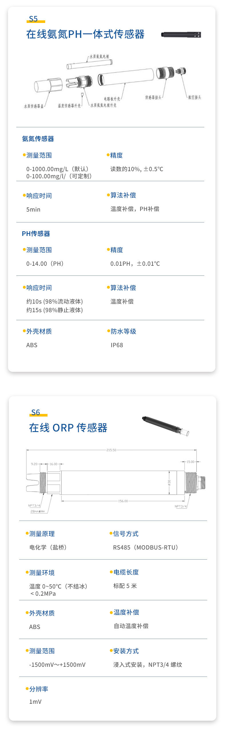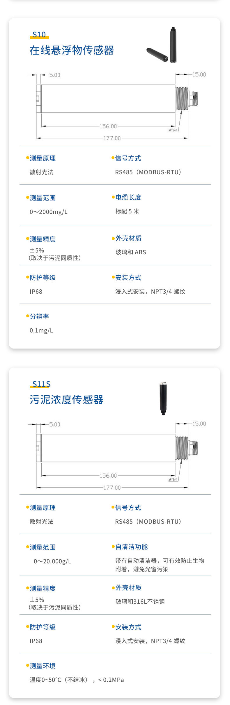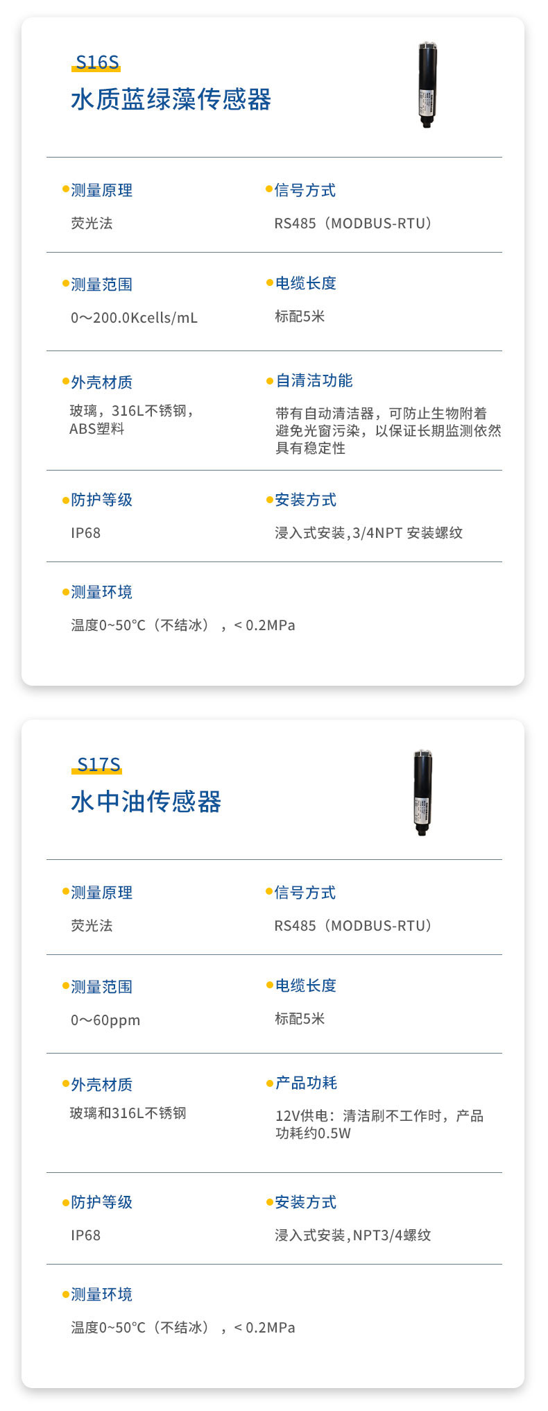 二.水质透明度温度传感器技术性能和规格