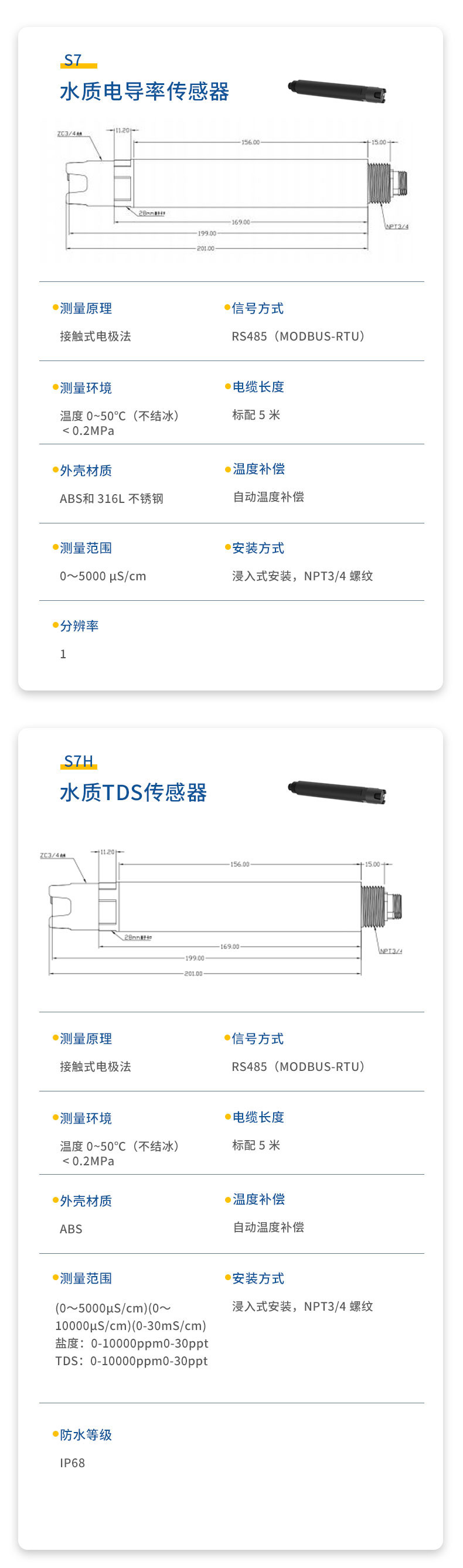 | 安装方式 | 浸入式安装,NPT3/4螺纹 |