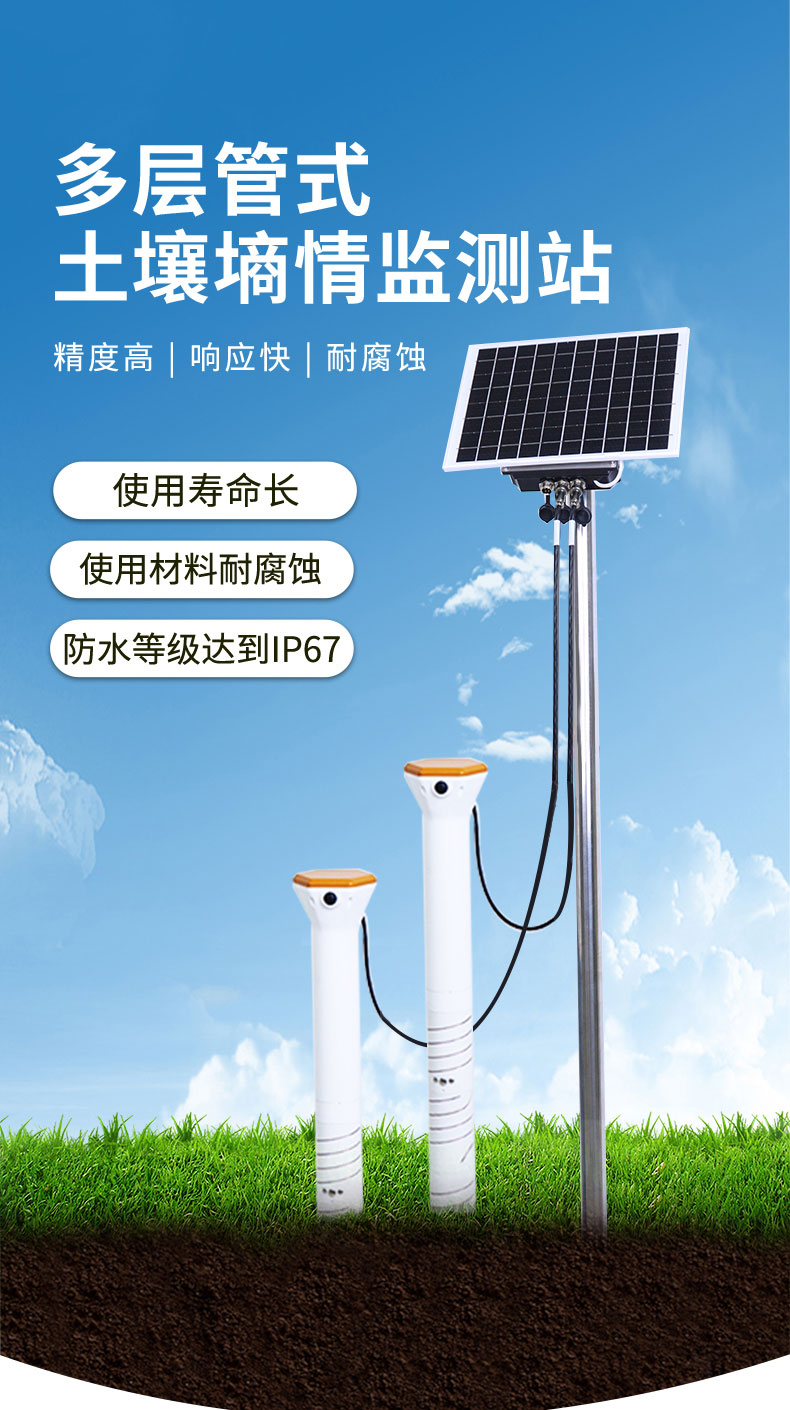 五层管式墒情监测整站是用于监测土壤剖面温度、土壤剖面湿度、土壤剖面电导率的在线监测设备,集土壤温度、水分、电导率可广泛应用于智慧大棚、智慧果园、智慧灌溉等农业工程领域。