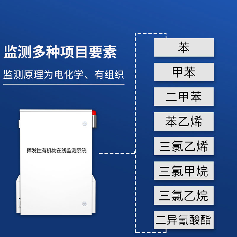 VOCs排放监测主要涉及石油化工、有机化工、制药制造、工业涂装、机械制造、包装印刷、电子生产、合成革、涂料油漆、服装加工、家具制造、胶黏剂、制鞋、油品储运的行业。同时排放具有无组织逸散和有组织固定污染源排放、污染物质种类多、浓度变化大、排放时间不确定等特点。TVOC自动监测报警系统可实时联系提供TVOC总量及各行业重点监测因子数据,并与环保局主管部门实时在线联网,实现TVOC总量减排实时监控及排污收费等功能。
