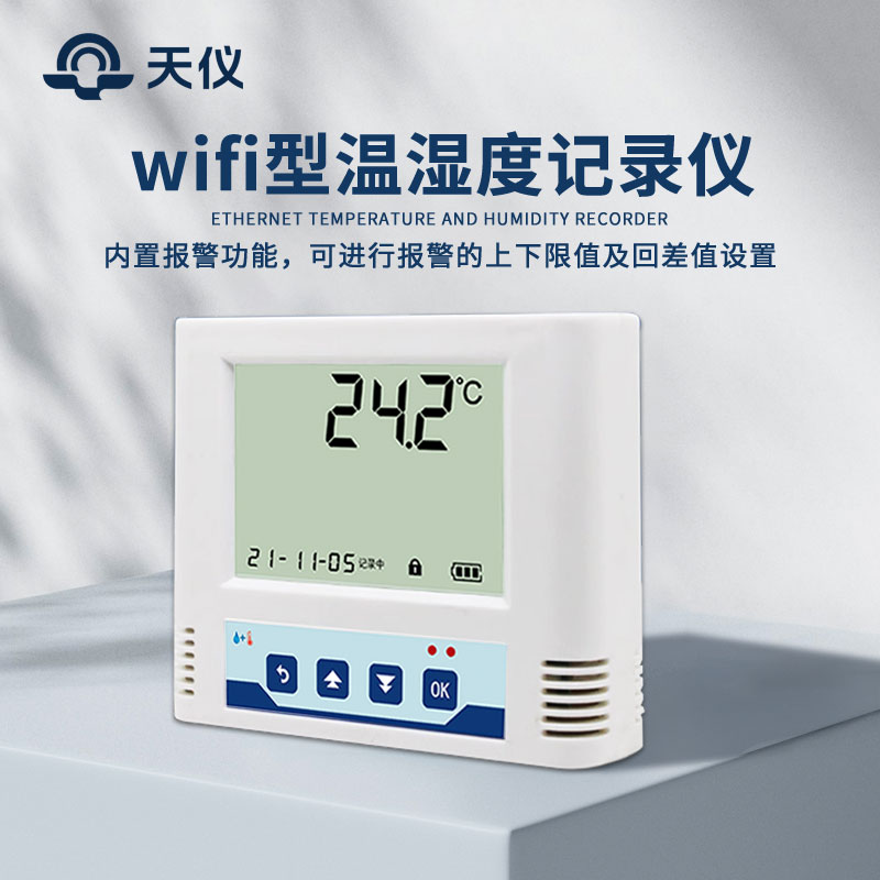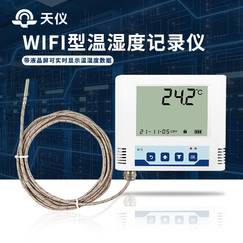 超高低温wifi型温湿度记录仪带有液晶屏可实时显示温湿度数据、设备电量及当前网络连接状态。采用WIFI无线传输,借助现场网络轻松联网上传数据,可选内置电池供电。