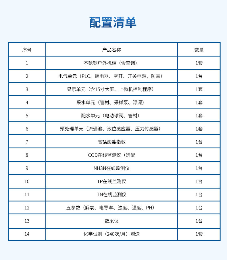 | 14 | 化学试剂(240次/月)赠送 | 1套 |