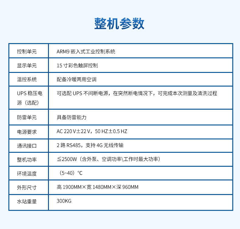 | UPS稳压电源(选配) | 可选配UPS不间断电源,在突然断电情况下,可完成本次测量及清洗过程 |