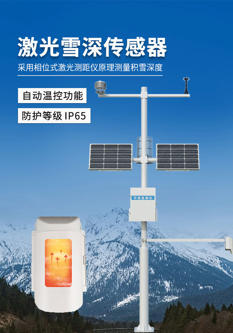 【产品简介】一、雪深监测站产品介绍我司XS3型雪深监测站,采用激光对雪的识别与测量技术,克服超声波,电磁波,重量等类型传感器对雪无法识别的缺点,从而达到极高的检测精度。通过监测所在位置的距离,···