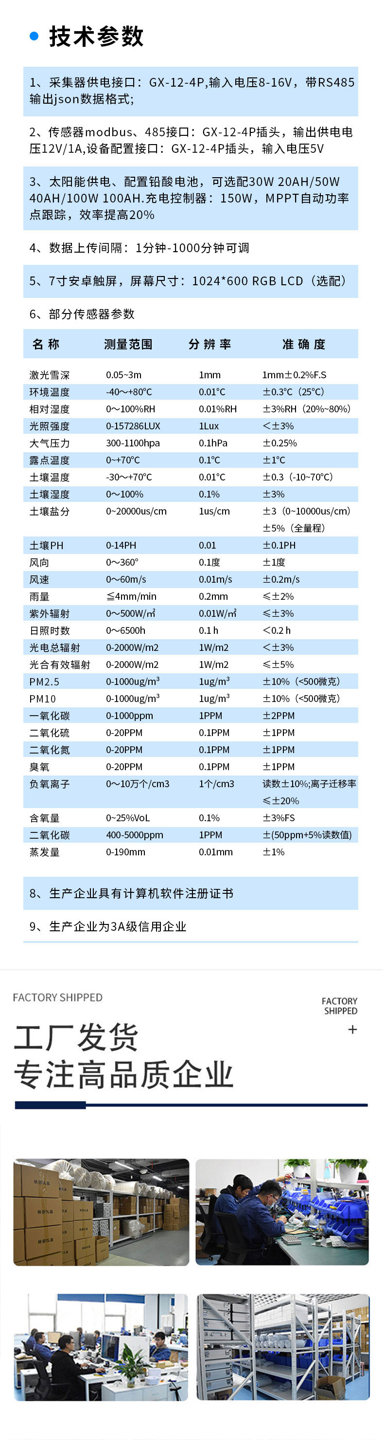 | 土壤温度 | -30~+70℃ | 0.01℃ | ±0.3(-10~70℃) |