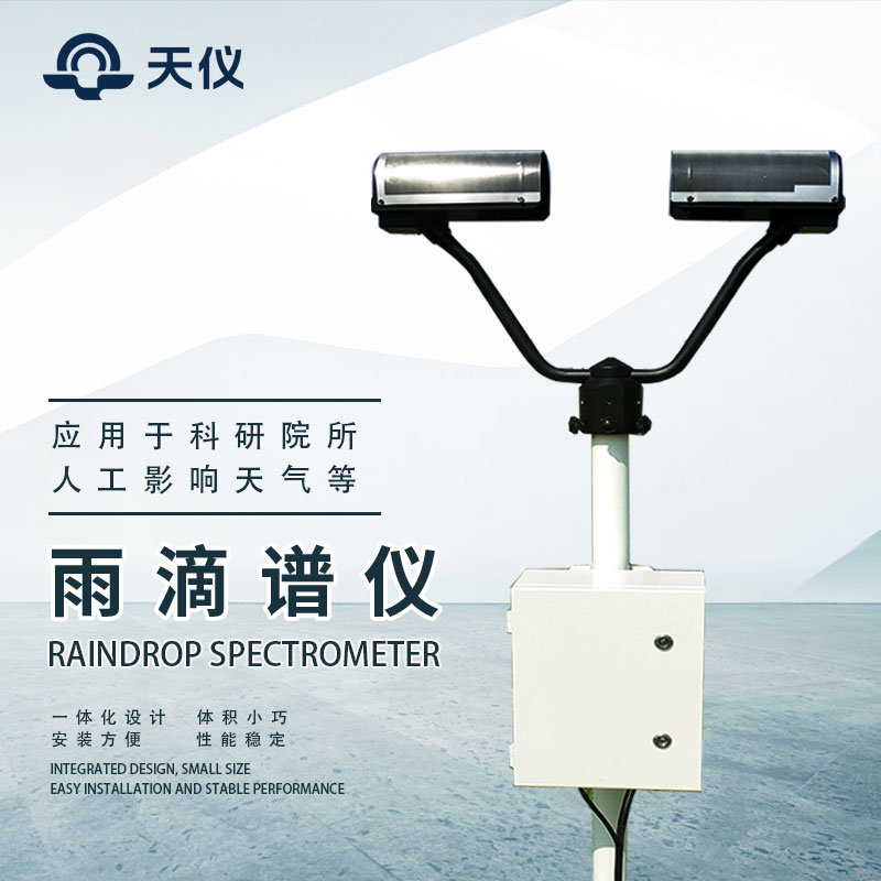 雨滴谱仪采用一体化设计,体积小巧、安装方便;性能稳定,数据准确,环境适应性强;发射及接收端覆盖独特的防溅罩,有效避免降水粒子溅落至采样区;可选配专业应用软件,用于接收仪器观测结果,图像化显示雨滴谱;可选配标校装置。