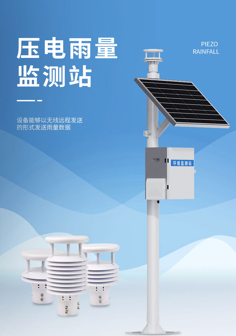 【产品简介】一、压电雨量监测站产品概述YJ2压电雨量监测站是一款以物联网为基础的现代型雨量站,由压电雨量传感器、采集器、太阳能供电系统、立杆支架等组成,设备能够以无线远程发送的形式发送雨量数据···