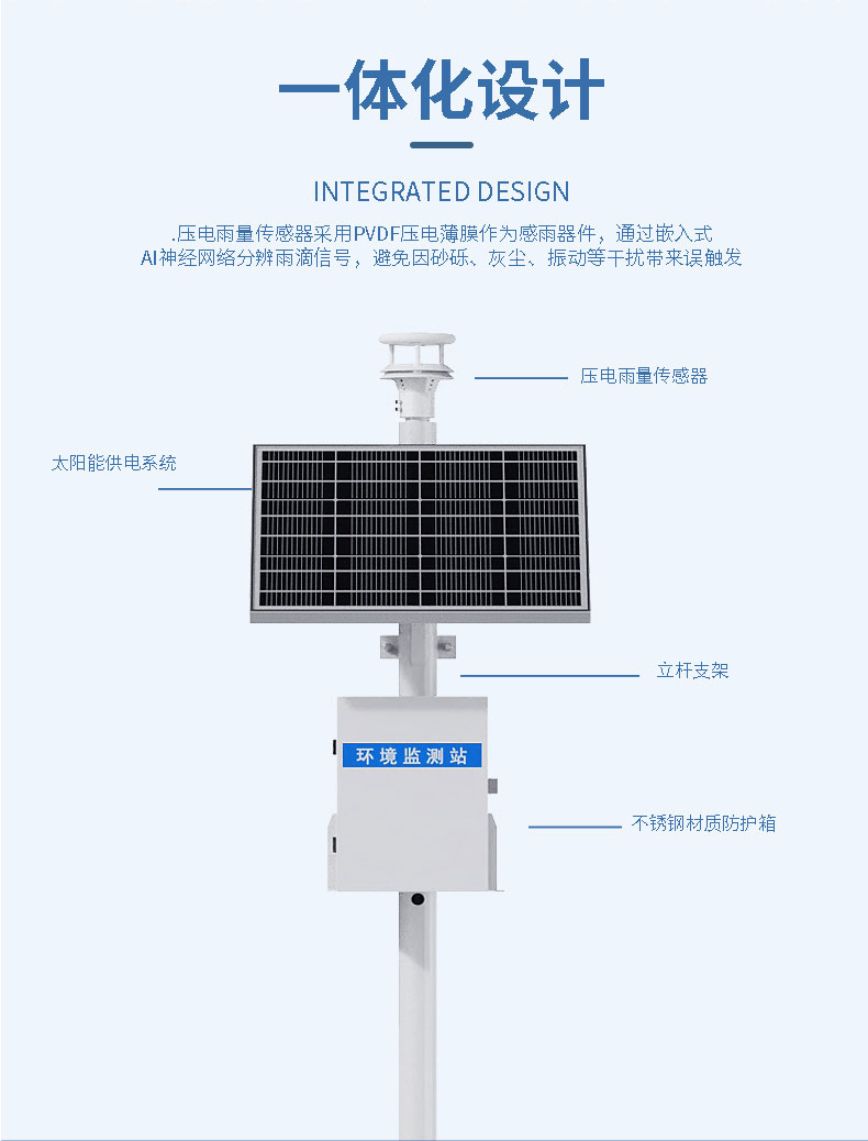 1.压电雨量传感器采用PVDF压电薄膜作为感雨器件,通过嵌入式AI神经网络分辨雨滴信号,避免因砂砾、灰尘、振动等干扰带来误触发,一体化设计,外观精美