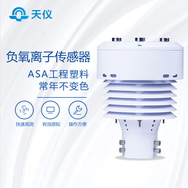 负离子传感器创新性地将负氧离子、空气温度、湿度、PM2.5、PM10等气象要素通过一个高集成度结构来实现,可实现户外气象参数24小时连续在线监测,通过数字量通讯接口将五项参数一次性输出给用户。