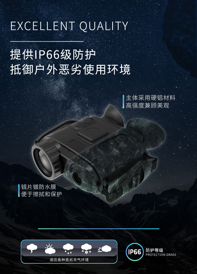 双目多功能热成像系统由远红外热成像系统、双瞳校正系统、高分辨率的OLED成像系统、以及GPS/北斗、激光测距组成,产品一体化集成度高,体积小、重量轻、功耗低,是移动手持透雾和夜视监控的高性价比产品。