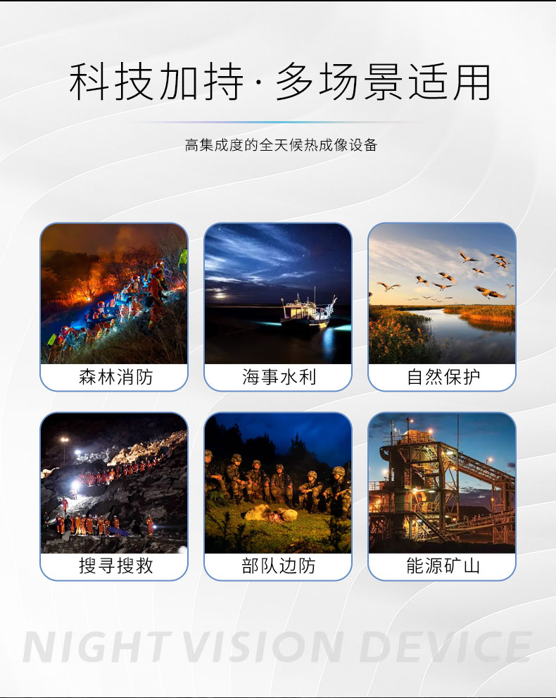 该系列设备能有效解决24小时全天候移动式昼夜成像需求,全天支持全彩、黑白、微光模式可选择、可切换显示功能;且具备优秀的成像能力,昼夜最远观察距离为1500米;现已成功应用于森林消防、搜寻搜救、部队边防、海事水利、航道、自然保护区、公安武警、机场、文物保护、能源矿山等单兵、单警、单人巡查等安保领域。