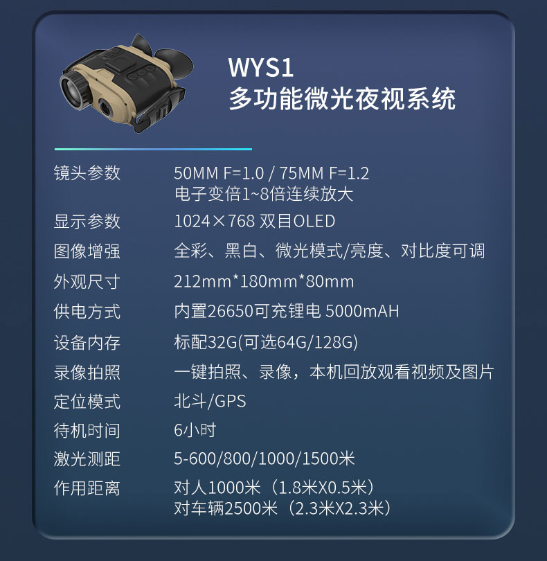 【产品简介】一、微光夜视仪产品简介微光夜视仪由超低照度成像系统、双瞳校正系统、高分辨率的OLED成像系统、以及GPS/北斗、激光测距组成,产品一体化集成度高,体积小、重量轻、功耗低,是移动手持···