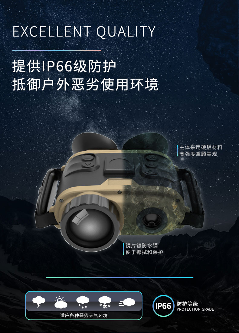 微光夜视仪由超低照度成像系统、双瞳校正系统、高分辨率的OLED成像系统、以及GPS/北斗、激光测距组成,产品一体化集成度高,体积小、重量轻、功耗低,是移动手持透雾和夜视监控的高性价比产品。