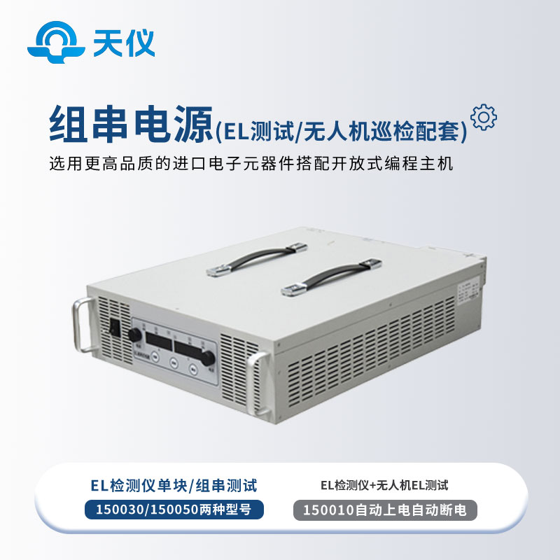 【产品简介】一、组串电源产品简介组串电源为我司针对光伏电站组串反向上电特性所研发,通过将交流电转换为直流电输入电池板激发电致发光,从而进行EL的内部缺陷测试。TY-150030为研发型程控电源···