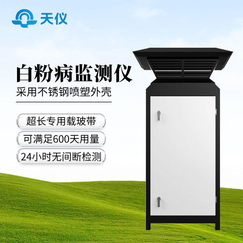 小麦白粉病为害小麦叶片、茎秆以及麦穗部,会导致小麦分蘖数减少,穗小粒少,产量减少。小麦白粉病监测仪是集气象监测和智能孢子捕捉显微成像于一体的新型白粉病监测装备。系统通过采集小麦种植区的生长环境情况,并根据系统内建模型进行小麦白粉病的发病情况预测。同时内置的白粉病孢子捕捉装置通过采集白粉病发病的孢子存量及其扩散动态,为白粉病的发生提供了无人化、可视化的验证手段。该设备主要由气象信息采集装置、孢子捕捉装置、孢子承载装置、图像采集装置、网络传输模块、电源与防雷系统组成。实现远程自动捕捉白粉病孢子信息,载玻带自动转动,自动采集、自动显微成像拍照,图片数据自动上传,自动运行等功能。同时将环境气象信息和白粉病病害图片实时上传到指定网络平台,形成气象环境信息与孢子发生状况动态对比数据库,为研究白粉病发生趋势和气象之间的关系提供大量的数据支撑。为现代农业提供服务,满足病情预测预报及标本采集的需要,及时防治病害发生。