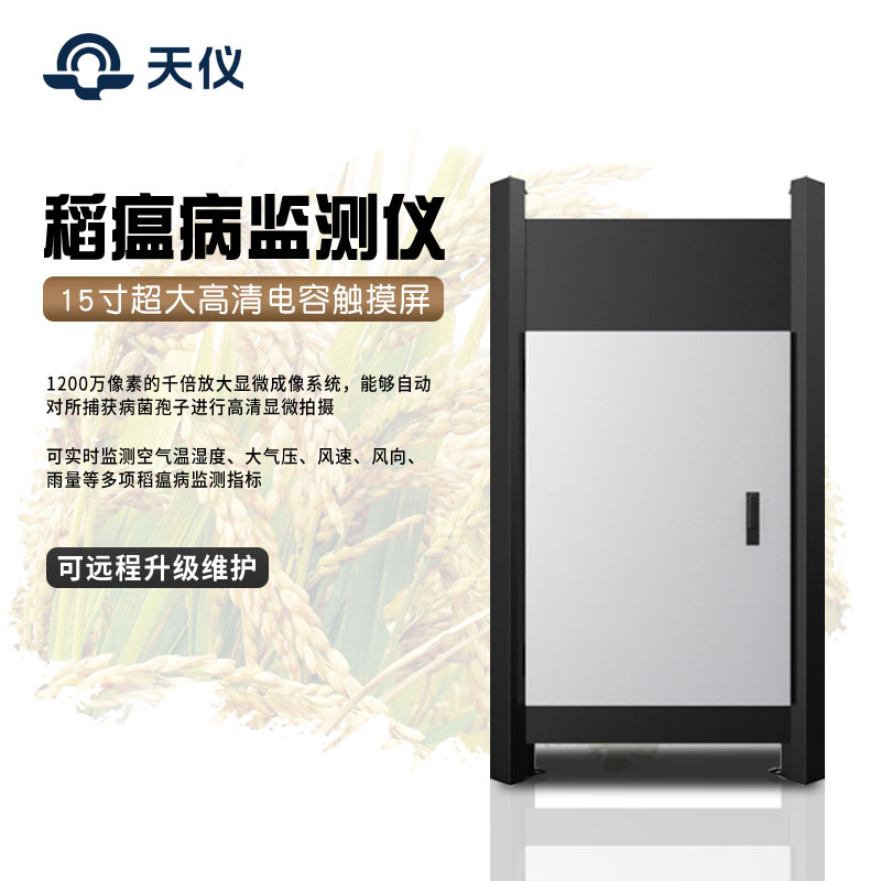 稻瘟病在水稻整个生育期中都可发生,为害秧苗、叶片、穗、节等,分别称为苗瘟、叶瘟、穗瘟和节瘟,导致水稻产量减少。稻瘟病监测仪是集气象监测和智能孢子捕捉显微成像于一体的新型稻瘟病监测装备。系统通过采集水稻种植区的生长环境情况,并根据系统内建模型进行稻瘟病的发病情况的预测。同时内置的稻瘟病孢子捕捉装置通过采集稻瘟病发病的孢子存量及其扩散动态,为稻瘟病的发生提供了无人化、可视化的验证手段。该设备主要由气象信息采集装置、孢子捕捉装置、孢子承载装置、图像采集装置、网络传输模块、电源与防雷系统组成。实现远程自动捕捉稻瘟病孢子信息,载玻带自动转动,自动采集、自动显微成像拍照,图片数据自动上传,自动运行等功能。同时将环境气象信息和稻瘟病病害图片实时上传到指定网络平台,形成气象环境信息与孢子发生状况动态对比数据库,为研究稻瘟病发生趋势和气象之间的关系提供大量的数据支撑。为现代农业提供服务,满足病情预测预报及标本采集的需要,及时防治病害发生。