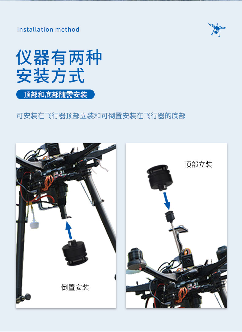 | 安装方式 | 飞行器顶部立柱安装或底部吊装 | ||