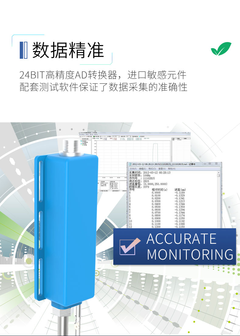 电容式浪高仪是一款集成了低功耗微处理器、24位高精度AD转换器和电容式波高传感器的高性能水文监测设备。
